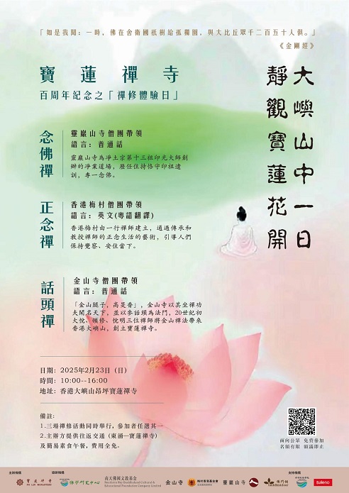 由中國佛教協會及香港佛教聯合會主辦;寶蓮禪寺承辦;饒宗頤文化館、香港大學饒宗頤學術館及一新美術館協辦的《菩提花開——慶祝香港回歸25周年佛教書畫展》已經圓滿結束。 現特別為展覽製作網上展館(VR),讓未能到場的巿民可透過網上觀賞,亦讓曾到場參觀的巿民重溫展覽。 《菩提花開—慶祝香港回歸25周年佛教書畫展》網上展覽館 前往「寶蓮禪寺藏品展」 前往「中國佛教界書畫展」